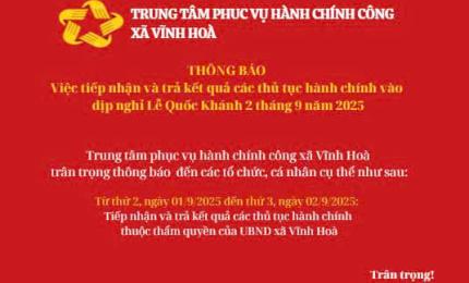 Thông báo tiếp nhận và trả kết quả tại Trung tâm Phục vụ Hành chính công